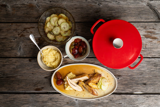 Ein Gusseisen-Topf ist eines der vielseitigsten Küchenutensilien – und das aus gutem Grund. Er speichert die Wärme wie kein anderer Topf und kann für alles verwendet werden, vom Köcheln und Schmoren bis zum Backen von Brot oder Braten von Hähnchen. Unsere emaillierten Gusseisen-Kasserollen verbinden traditionelle Handwerkskunst mit modernem Design und bieten Ihnen ein zeitloses Kochgeschirr, das sowohl schön als auch für Generationen gebaut ist.