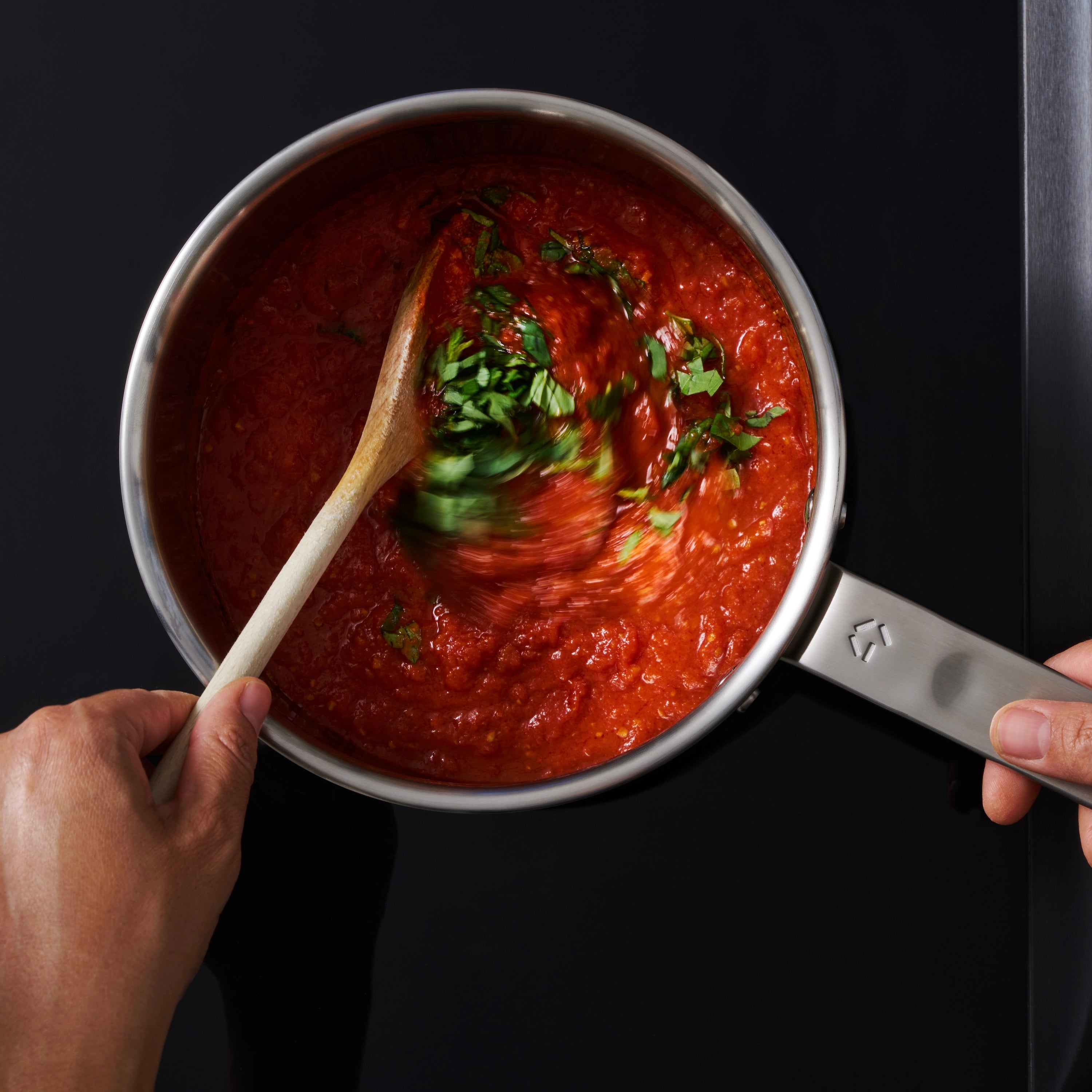 Erleben Sie eine außergewöhnlich gleichmäßige Wärmeverteilung dank der fünfschichtigen Konstruktion im Vergleich zu den drei Schichten, die normalerweise in Edelstahlkochgeschirr zu finden sind. Dadurch werden heiße Stellen am Boden Ihrer Töpfe oder Kasserollen vermieden, was verbranntes Essen, ungleichmäßiges Garen oder abgesetzte Soßen verhindert.