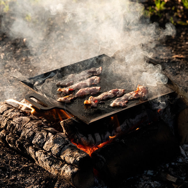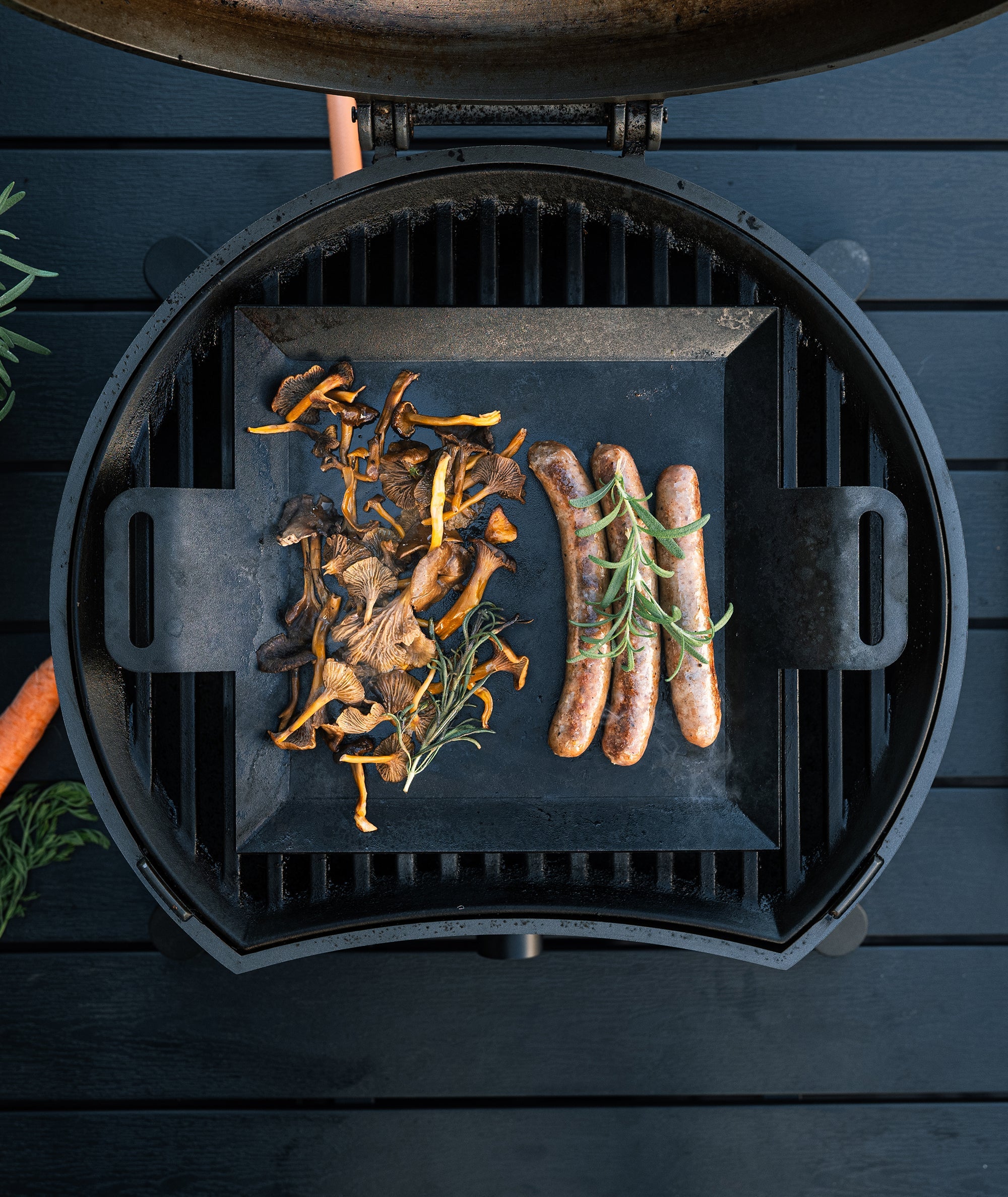 Die neue Griddle in kompakterer Größe passt perfekt auf einen einzelnen Brenner, auf den kleinen Grill und lässt sich problemlos in die meisten Backöfen einsetzen. Gleichzeitig ist sie perfekt, um die Grillplatte mit auf neue kulinarische Abenteuer im Freien zu nehmen und über einem Lagerfeuer zu kochen.