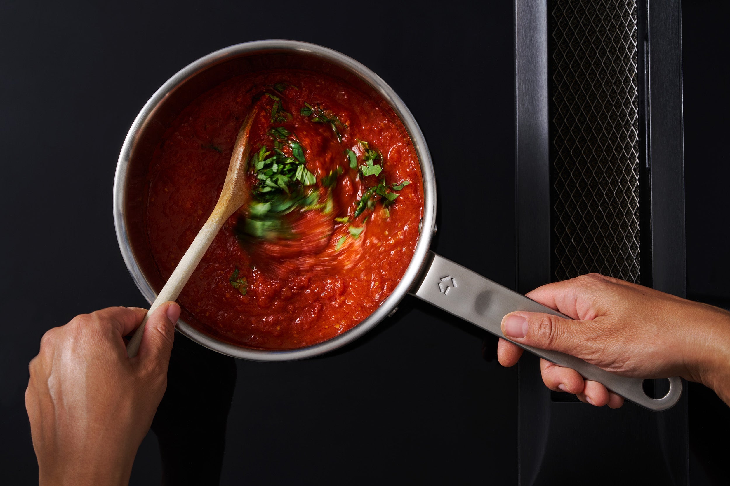 Dank des Aluminiumkerns, der eine hervorragende Wärmeleitung bietet, können Sie die Temperatur schnell anpassen und so eine präzise Wärmekontrolle erreichen. Im Gegensatz zu Kochgeschirr mit Sandwichboden verteilt sich die Wärme auf natürliche Weise an den Seiten des Topfes, da die gesamte Pfanne aus einer 5-ply Konstruktion besteht – ideal zum Emulgieren von Cremes und zum Verquirlen von Saucen.