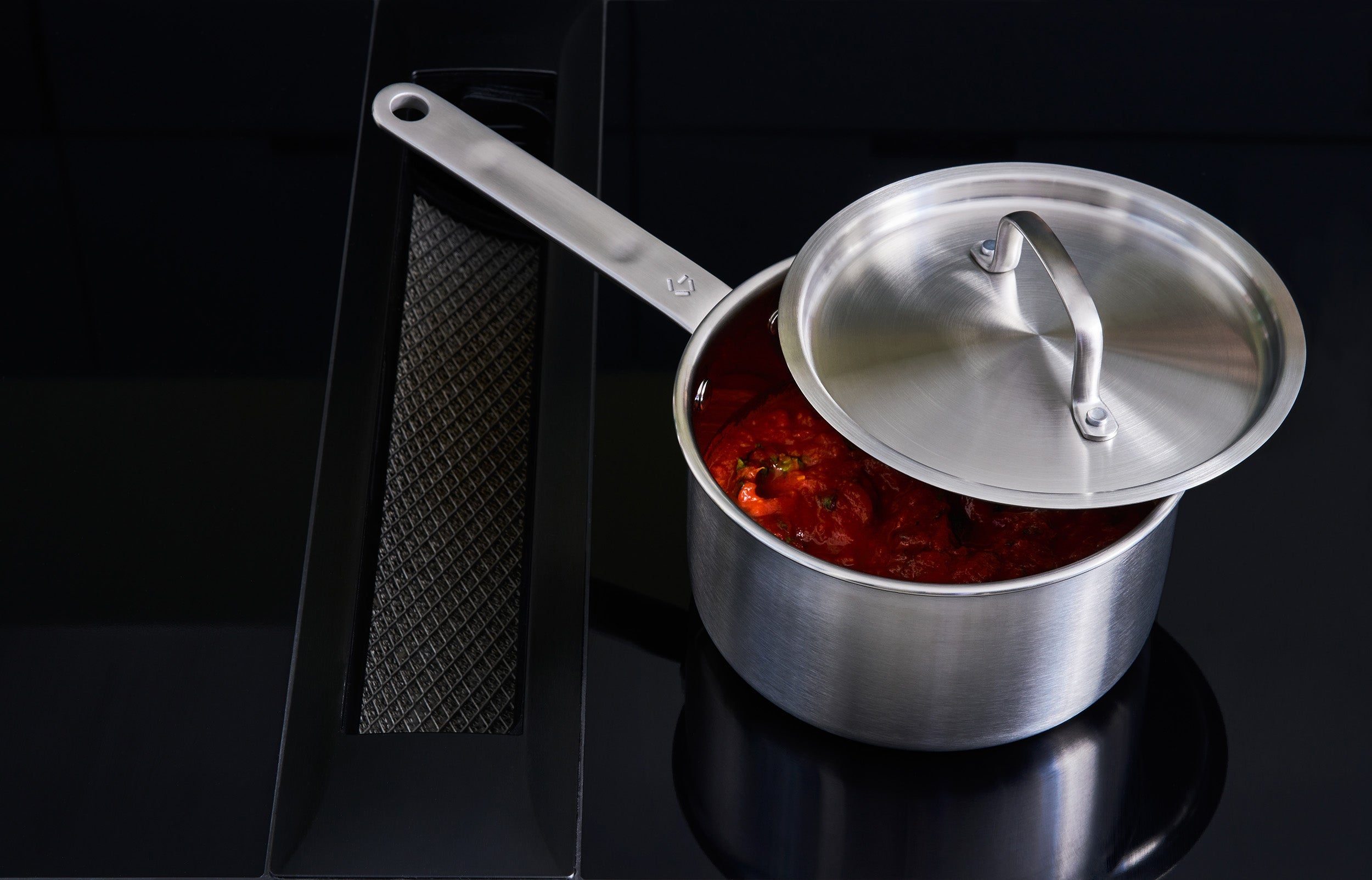 Der Stieltopf gewährleistet dank seiner fünfschichtigen Konstruktion eine außergewöhnlich gleichmäßige Wärmeverteilung, im Vergleich zu den drei Schichten, die normalerweise in Kochgeschirr aus Edelstahl zu finden sind. Dadurch werden heiße Stellen am Boden Ihres Stieltopfs vermieden, sodass nichts anbrennt, alles gleichmäßig gegart wird und Soßen nicht getrennt werden.