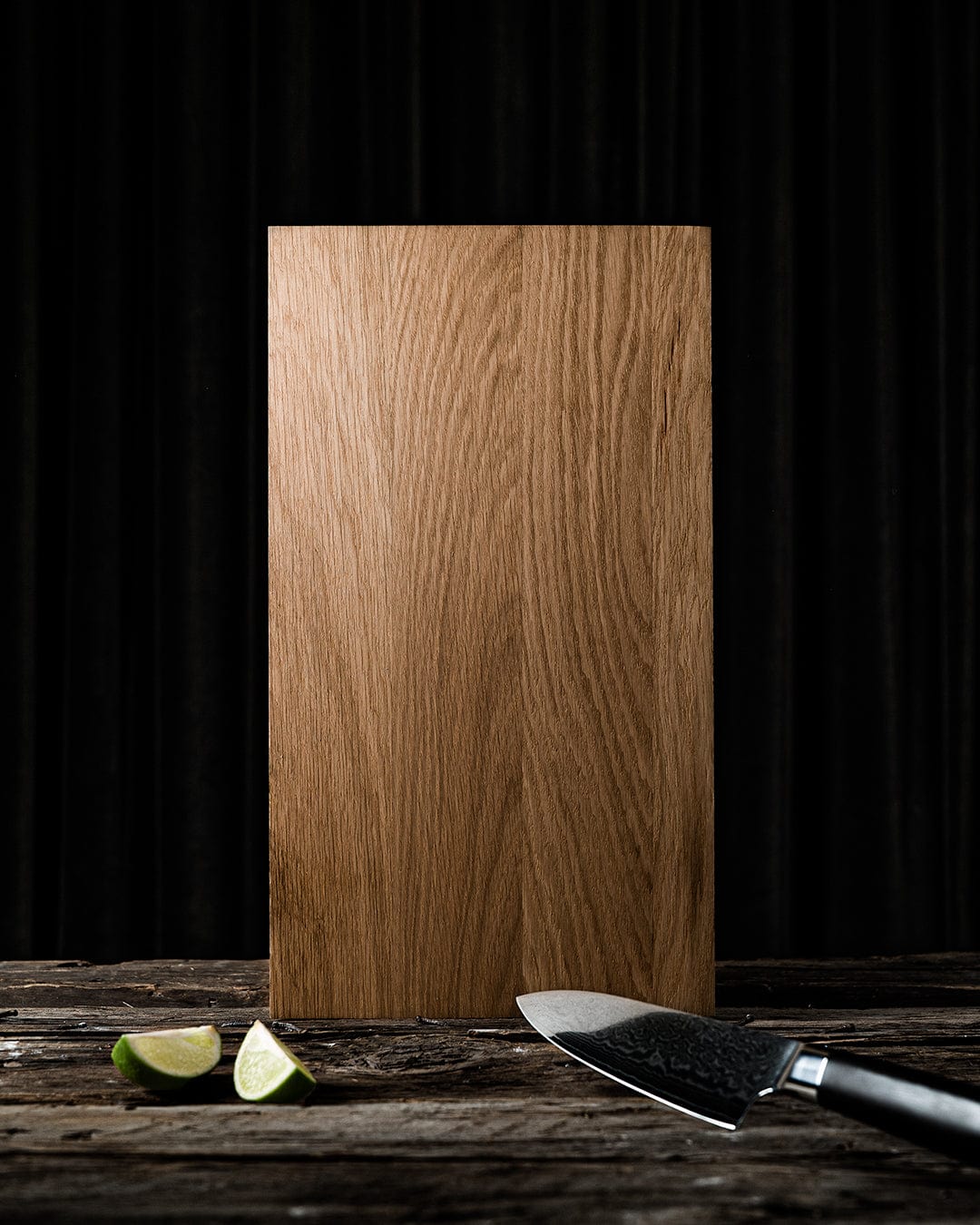 Das Schneidebrett besteht aus massiver FSC-zertifizierter Eiche aus französischen Wäldern, wo jedes Stück Eiche sorgfältig ausgewählt, zugeschnitten und verleimt wird. Die Produktion findet in einem Familienunternehmen in Frankreich, südlich von Lyon, statt, das über mehr als 100 Jahre Erfahrung verfügt. Das Ergebnis ist ein solides Schneidebrett mit einem minimalistischen, zeitlosen Design.