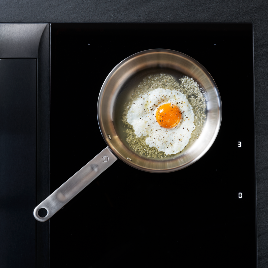 Dank des Aluminiumkerns, der eine hervorragende Wärmeleitung bietet, können Sie die Temperatur der Pfanne schnell und präzise regulieren. Im Gegensatz zu Kochgeschirr mit einem aufgesetzten Sandwichboden verteilt sich die Hitze auf natürliche Weise an den Seiten, da die gesamte Pfanne aus einer 5-ply Konstruktion besteht. So werden kalte Ränder und eine übermäßig heiße Mitte vermieden.