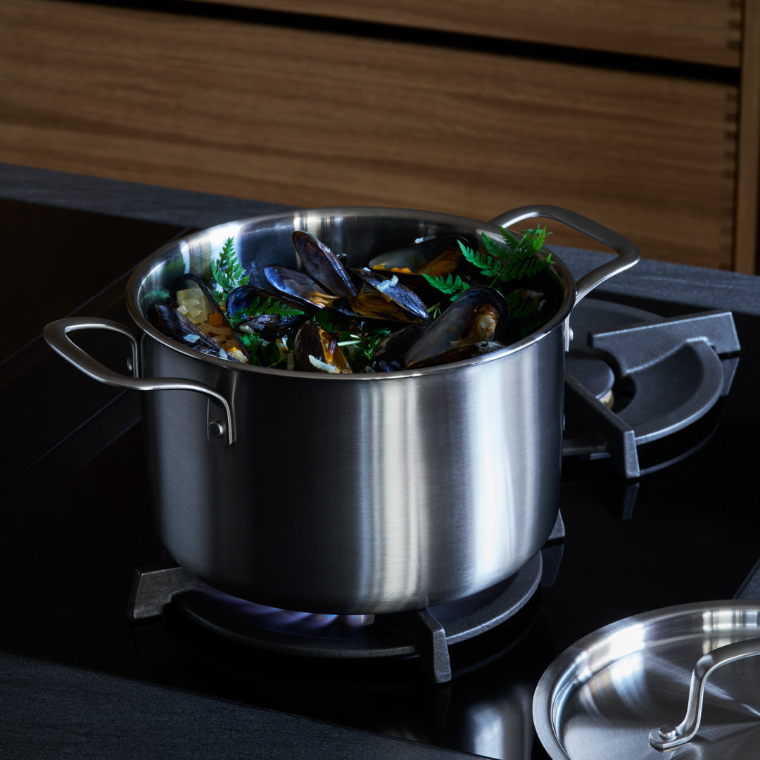 Wir haben Dänemarks Spitzenköche gefragt, wie die ultimative Serie von Töpfen und Pfannen aussehen sollte, und hier ist sie. Mit professionellen Details wie einem Schüttrand und Materialien, die in den besten Restaurants der Welt verwendet werden. Mit einem Fassungsvermögen von 4 Litern hat der Topf die universelle Größe, die in jeder Küche vorhanden sein sollte – perfekt zum Kochen von Nudeln, für eine cremige Suppe oder zum Dämpfen von Muscheln.
